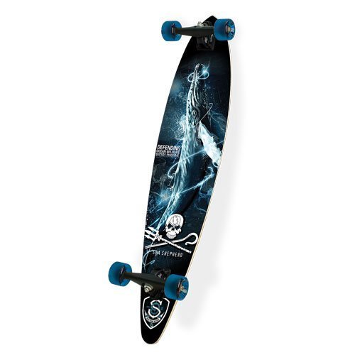 The Sector 9 Sea No Evil Sea Shepard Complete Longboard Skateboard is a humpback whale designed with custom artwork by Monster Media for the Sea No Evil Art Show in Riverside, California, to benefit Sea Shepherd and to preserve and protect the oceans of the world.