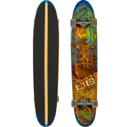 Hop on the Lib Tech Longboard with its lightweight, eco-friendly, and poppy Plastihide deck, so you can cruise across town on a tough board that supports you in more ways than one. The deck is features birch rails, 46 wood laminates, magnesium strand reinforcement, and a tensioned graphite bottom layer for a strong, lightweight deck made from fast-growing renewable woods and 100% vegan glues and resins. Lib Tech shaved off even more weight with 19 air spring chambers which make the board easy to control through busy streets. Tracker trucks and 65mm wheels let you roll around and carve turns past frustrated commuters boiling in traffic inside their 3-piece suits.