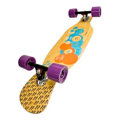 The Loaded Ceviche takes the best aspects of the Fish, dices it up and dishes out something brand new. Light, quick and agile, the Ceviche was intended as a soulful and aggressive commuter board, but this puppy can hold its own on a hill if carved hard and is light enough to be carried back up or just about anywhere. Similar in length to the Fish, but with a shorter wheelbase, the Ceviche can be ridden between the trucks for pumping or off the tail for an aggressive, surfy feel. A maneuverable and pumpable board with strong surf roots. The flex of the board works synergistically with the Trackers. The tail is a bit softer than a traditional street deck tails, allowing for rebound and responsiveness. Wheel base is 25.5 inches and it weighs in at 5.6 lbs. Comes in 2 flexes, the first for cats over 180, and the second for the lighter fare in the 100 to 190+ range. This thing is sweet and it makes its best arcs in tight spaces, and with its trackers it does a great job playing Z-boy in anything made of concrete.